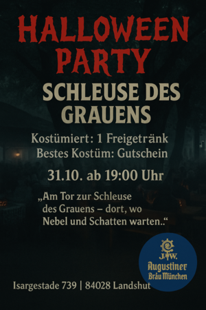 Am 31. Oktober verwandelt sich das Isargestade 739 in Landshut in die „Schleuse des Grauens“. Ab 19 Uhr öffnet dort die Halloween-Party ihre Tore und lädt zu einer schaurig-schönen Nacht voller Nebel, Schatten und unvergesslicher Stimmung ein.